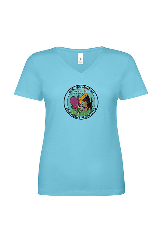 Royal Wee Canadian Bookworm's Reading Club, Hooked On A Book, NextLevel 60% Cotton, Women's V-Neck