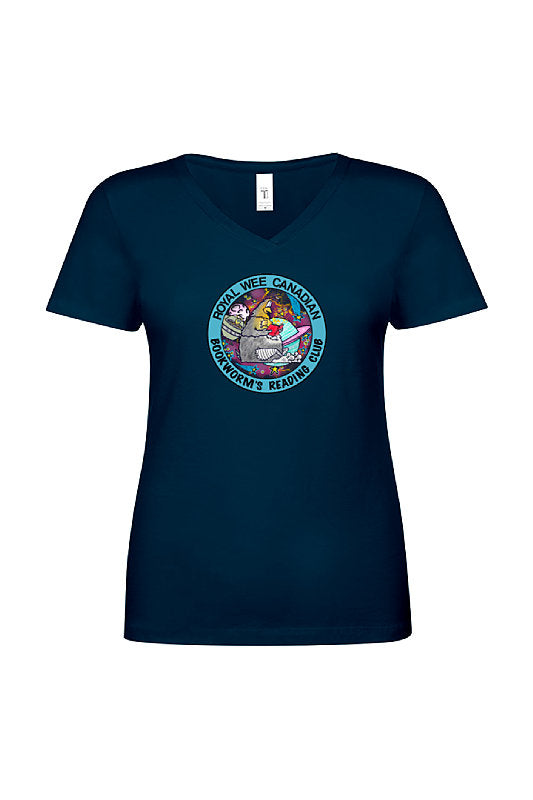 Royal Wee Canadian Bookworm's Reading Club, Reading Sci-Fi, NextLevel 60% Cotton, Women's V-Neck