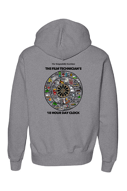 The Tonguedolly Exercises, 18hr Day Clock, No BG Lite, Champion 78-82% Cotton, Reverse Weave Hoodie