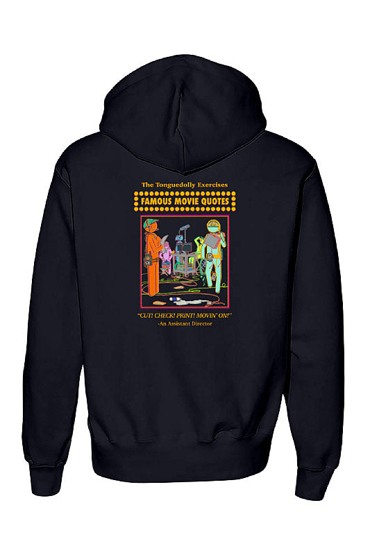 The Tonguedolly Exercises, FMQ, Cut! Check! Print! Movin' On!, Champion 78-82% Cotton, Unisex Hoodie, Dark BACK PRINT